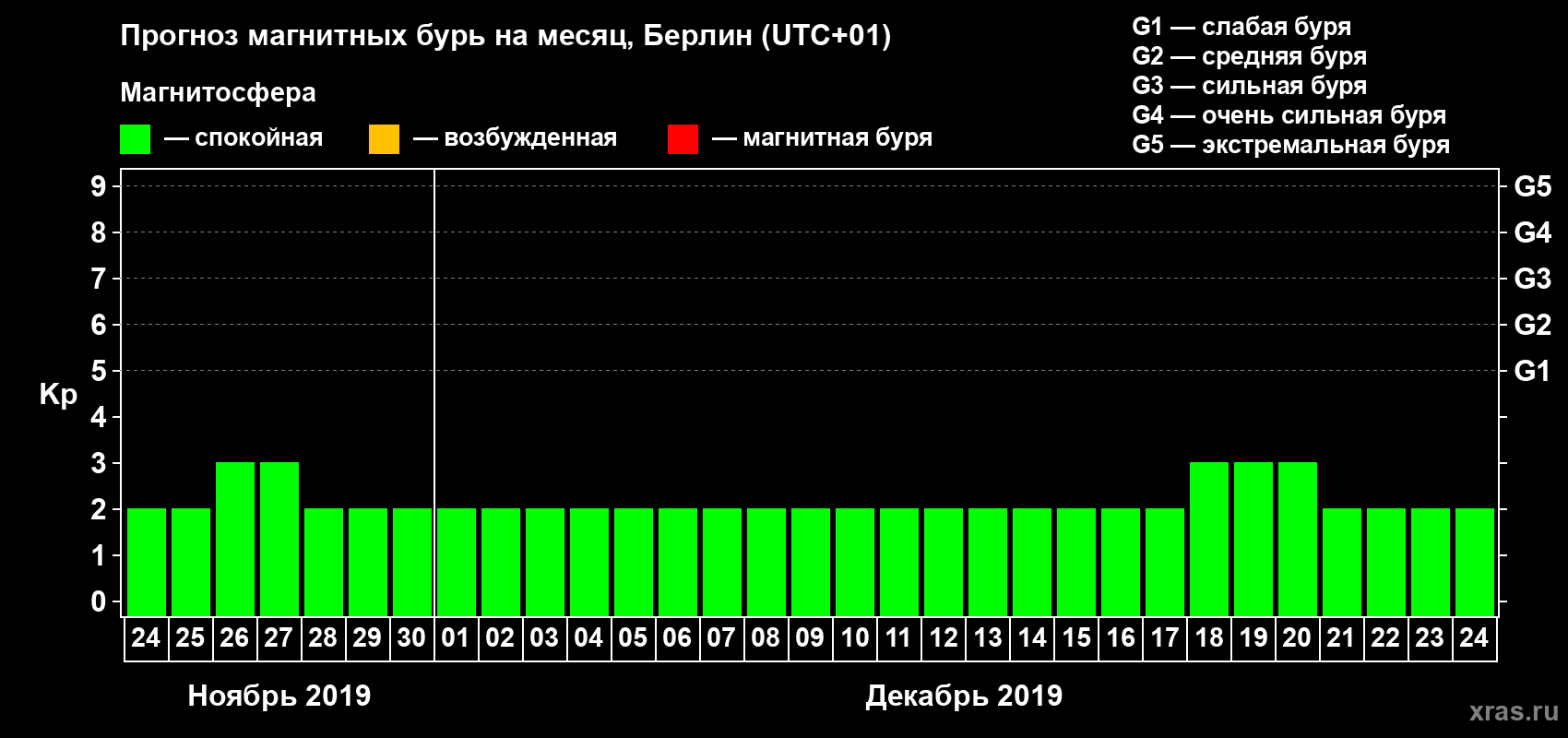 Прогноз магнитных бурь в Берлине — 24 ноября 2019 года