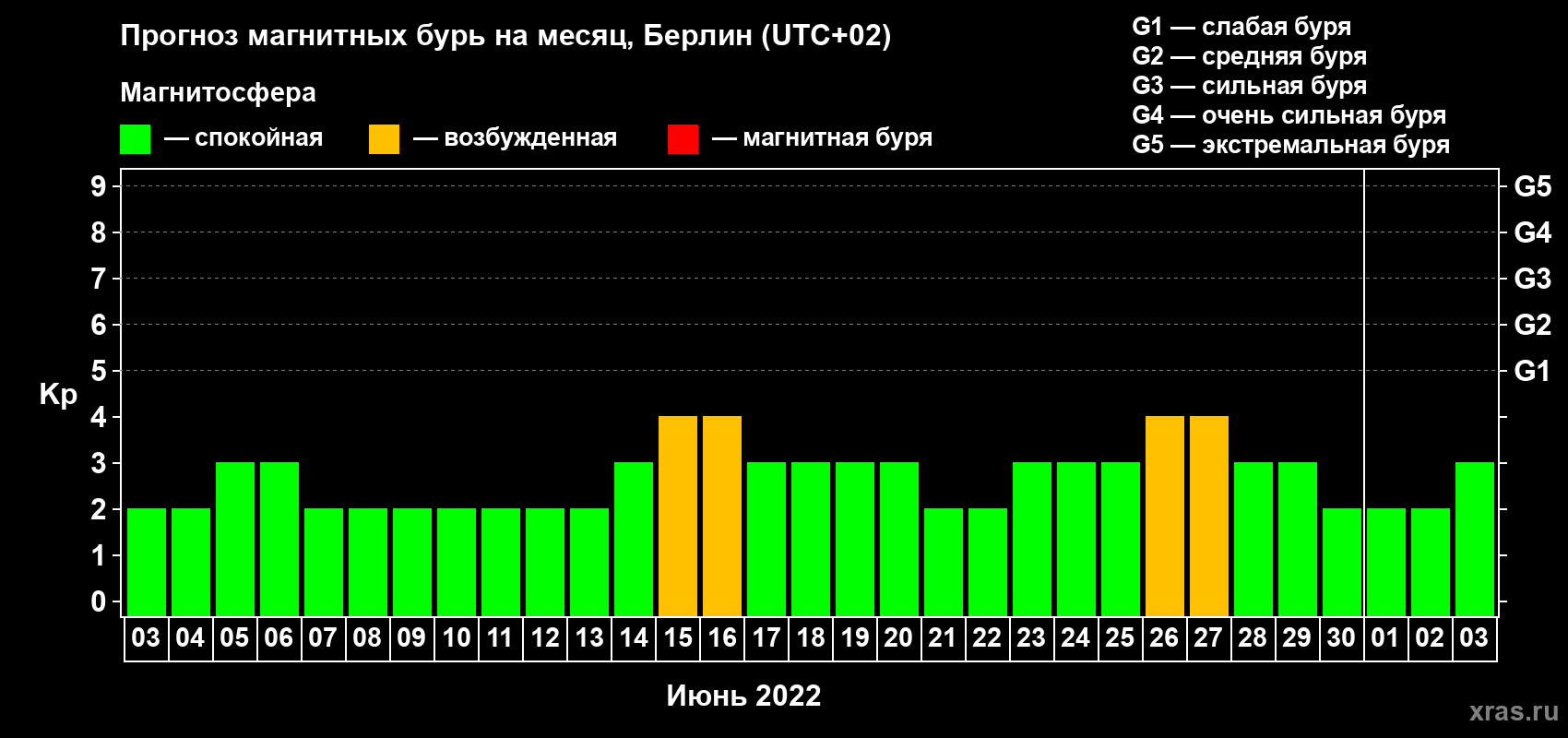 Прогноз магнитных бурь в Берлине — 3 июня 2022 года