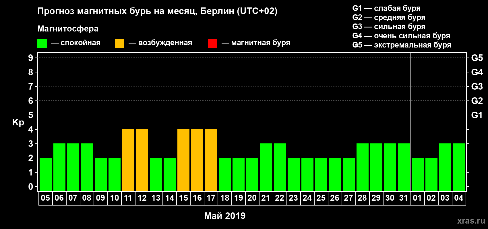 Прогноз магнитных бурь в Берлине — 5 мая 2019 года