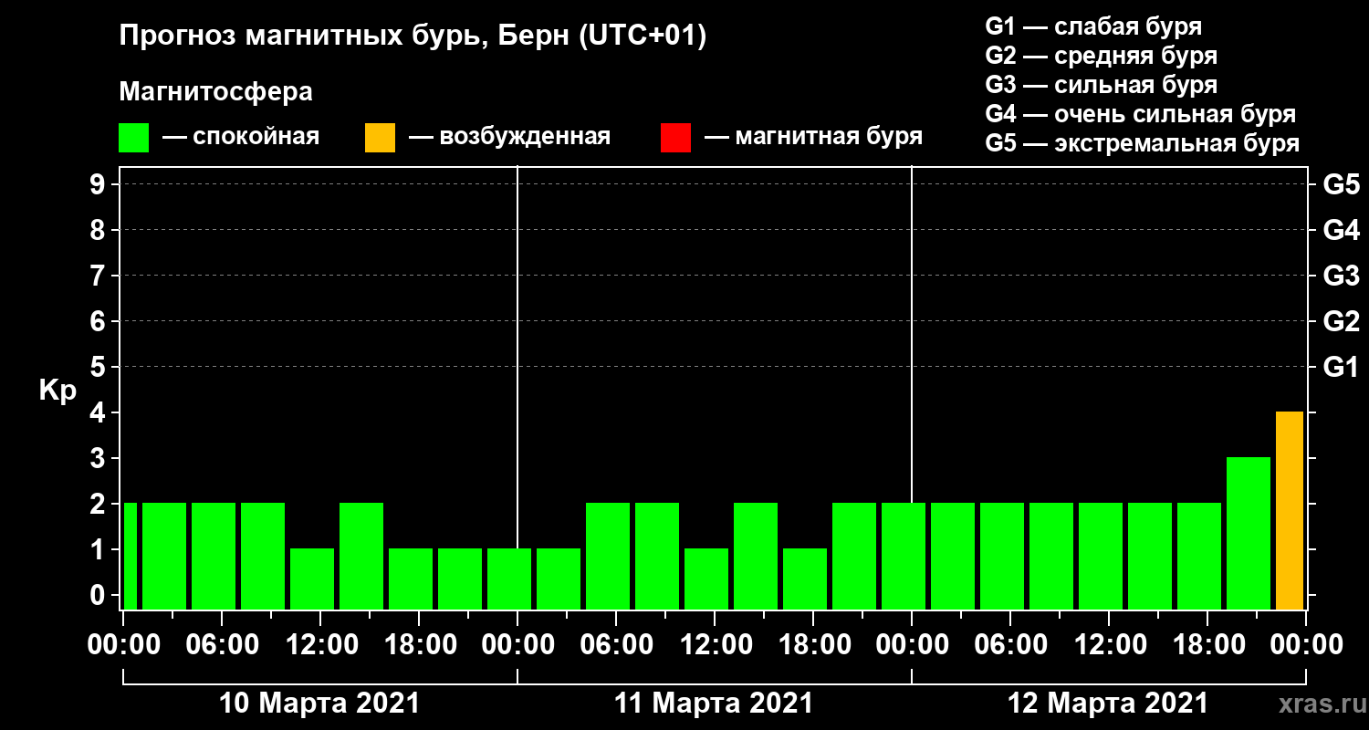 Прогноз магнитных бурь в Берне — 10 марта 2021 года