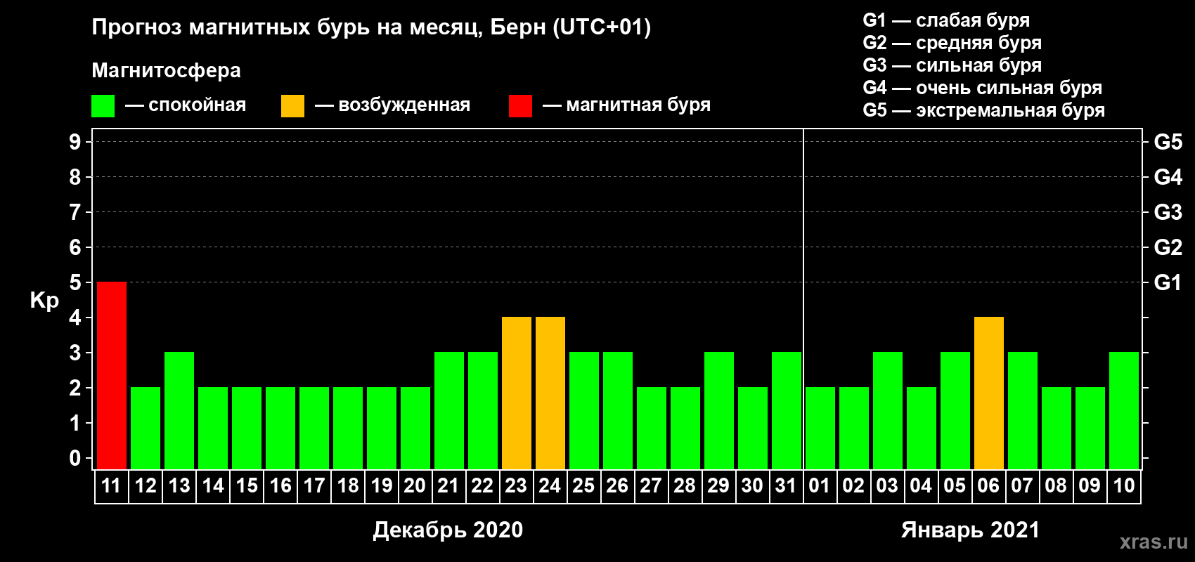 Прогноз магнитных бурь в Берне — 11 декабря 2020 года