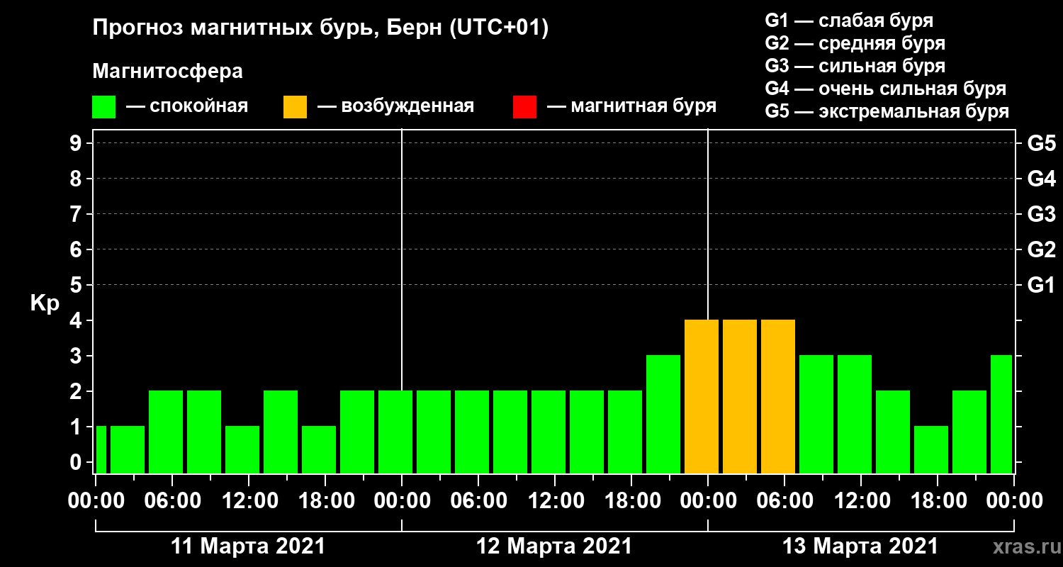 Прогноз магнитных бурь в Берне — 11 марта 2021 года