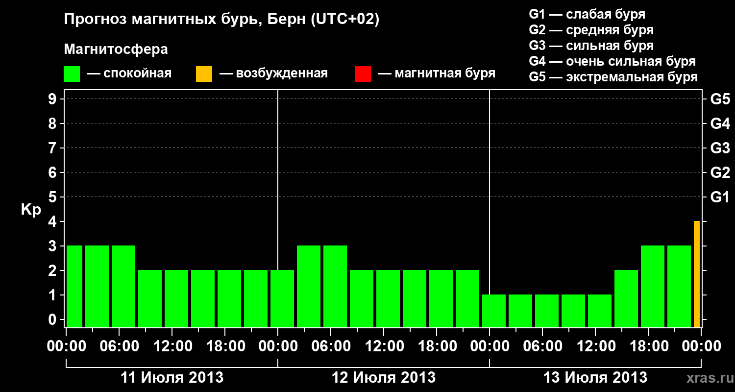 Прогноз магнитных бурь в Берне на 11 июля 2013 года