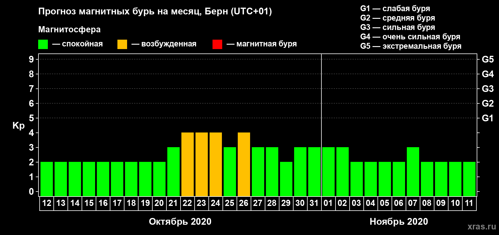 Прогноз магнитных бурь в Берне — 12 октября 2020 года