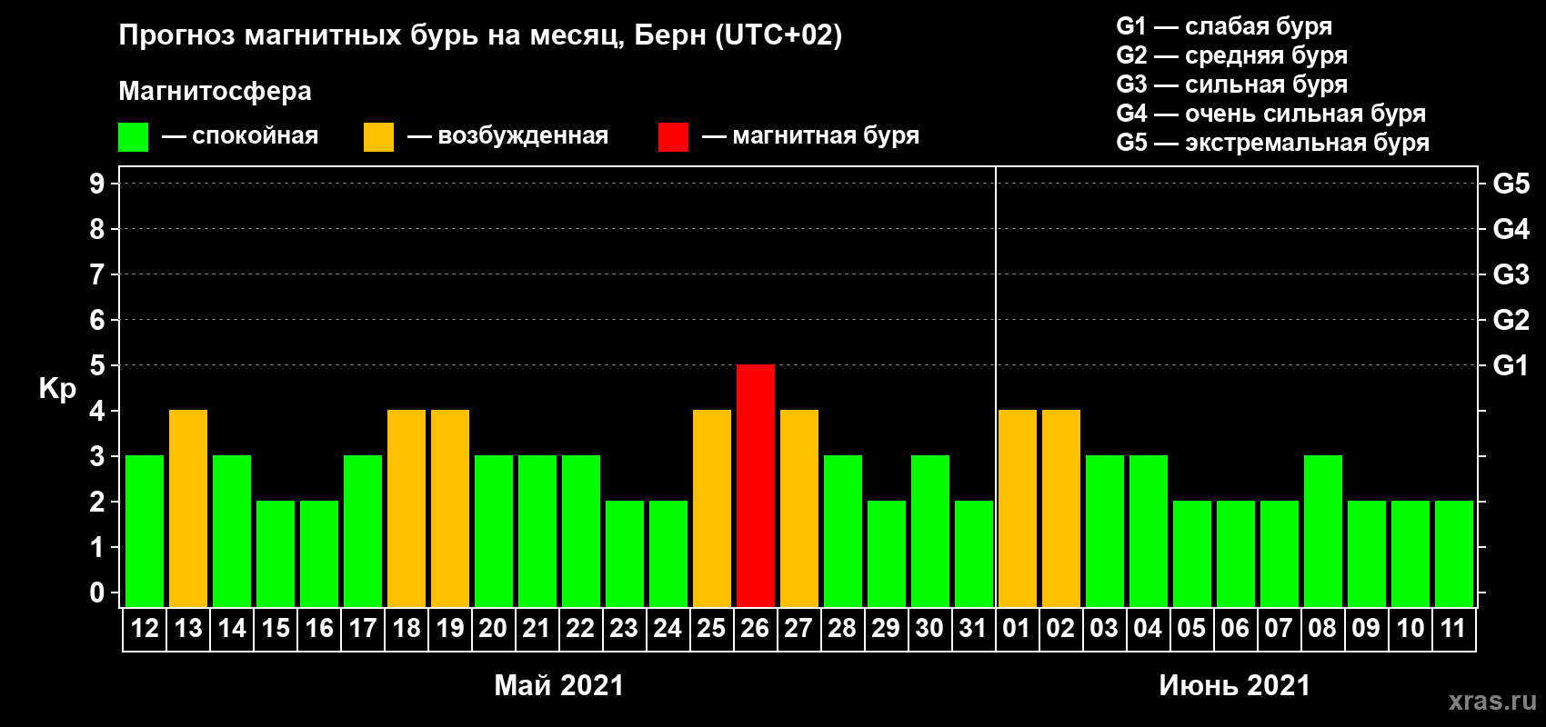 Прогноз магнитных бурь в Берне — 12 мая 2021 года