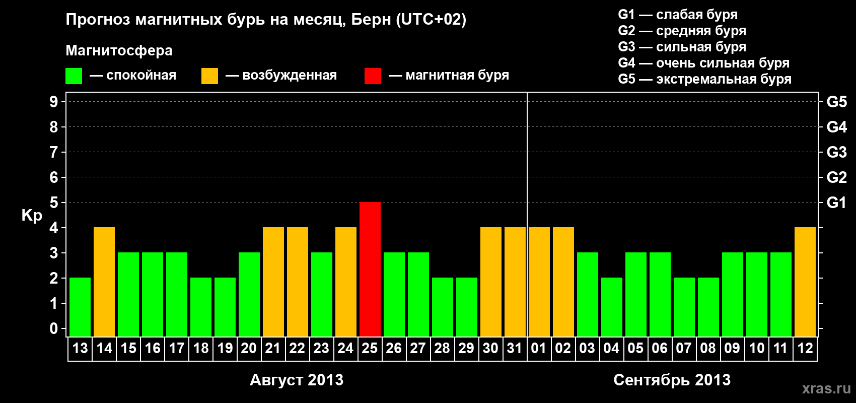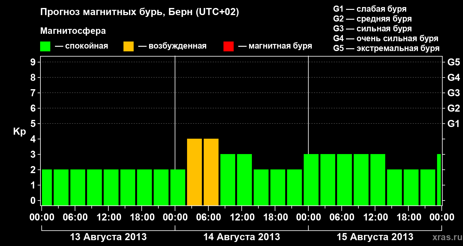 Прогноз магнитных бурь в Берне — 13 августа 2013 года