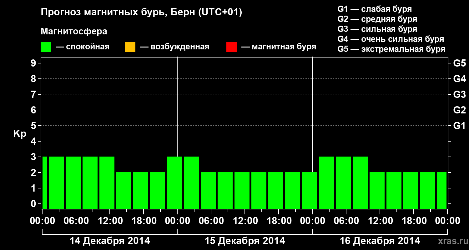 Прогноз магнитных бурь в Берне — 14 декабря 2014 года