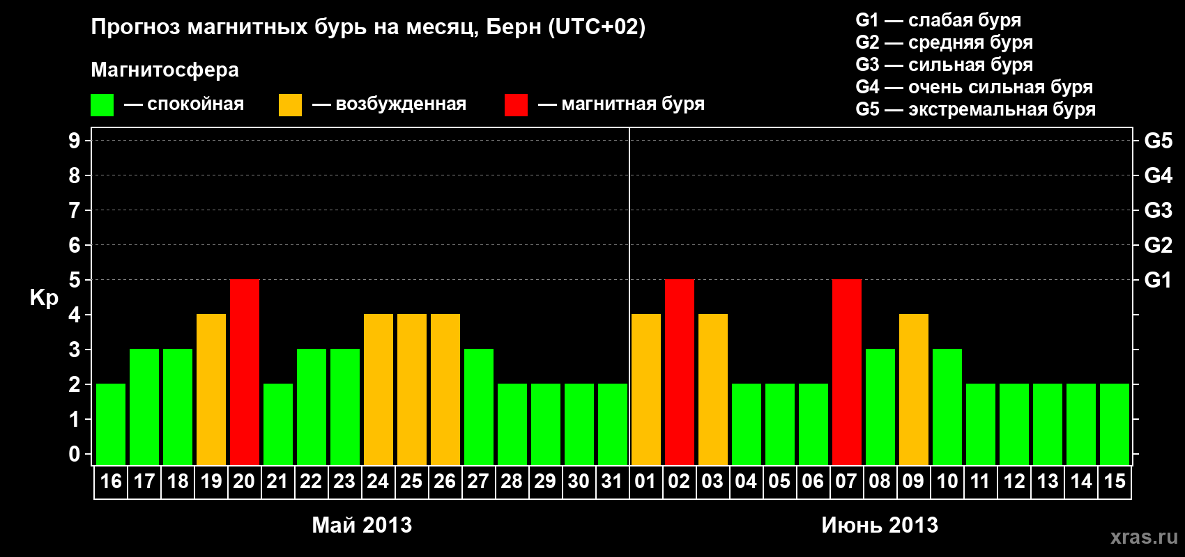 Прогноз магнитных бурь в Берне — 16 мая 2013 года