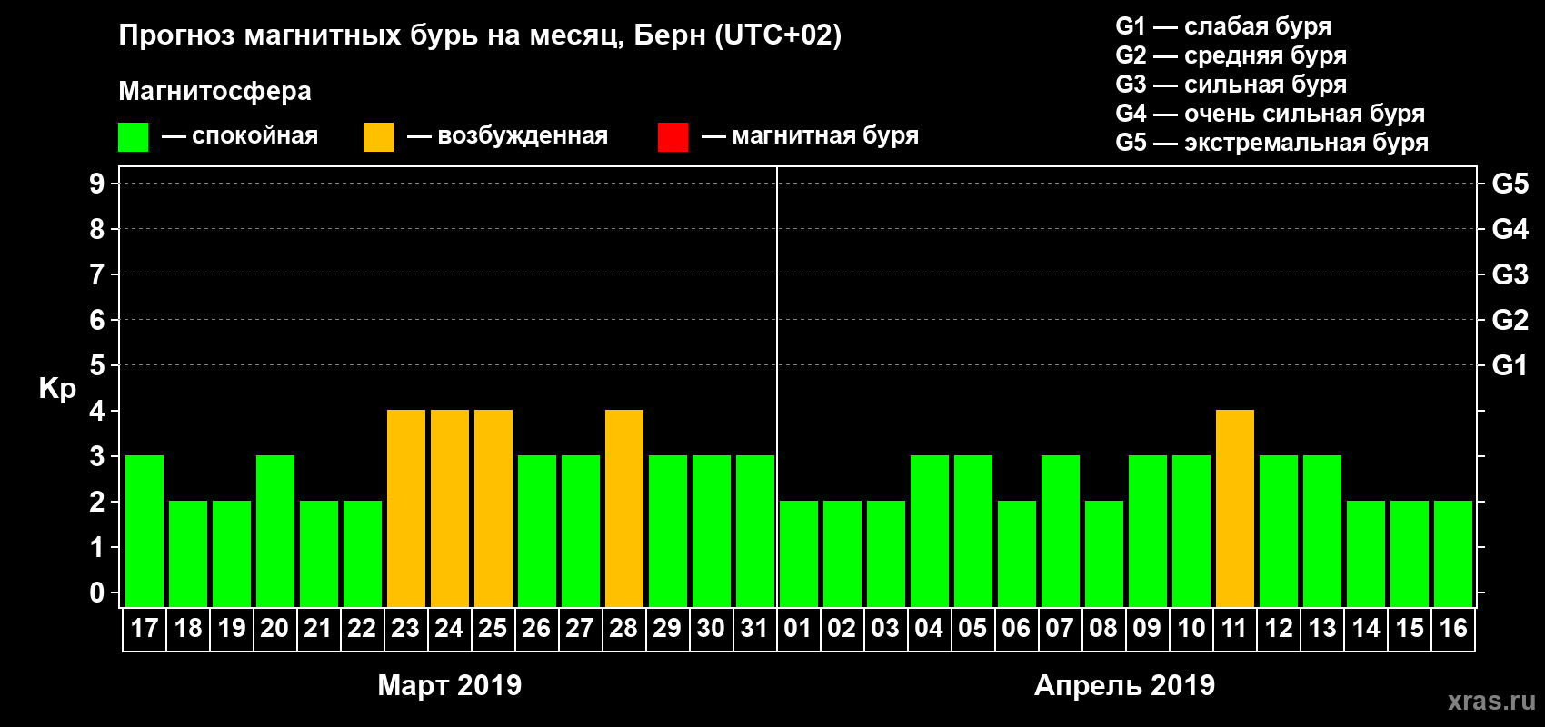 Прогноз магнитных бурь в Берне — 17 марта 2019 года