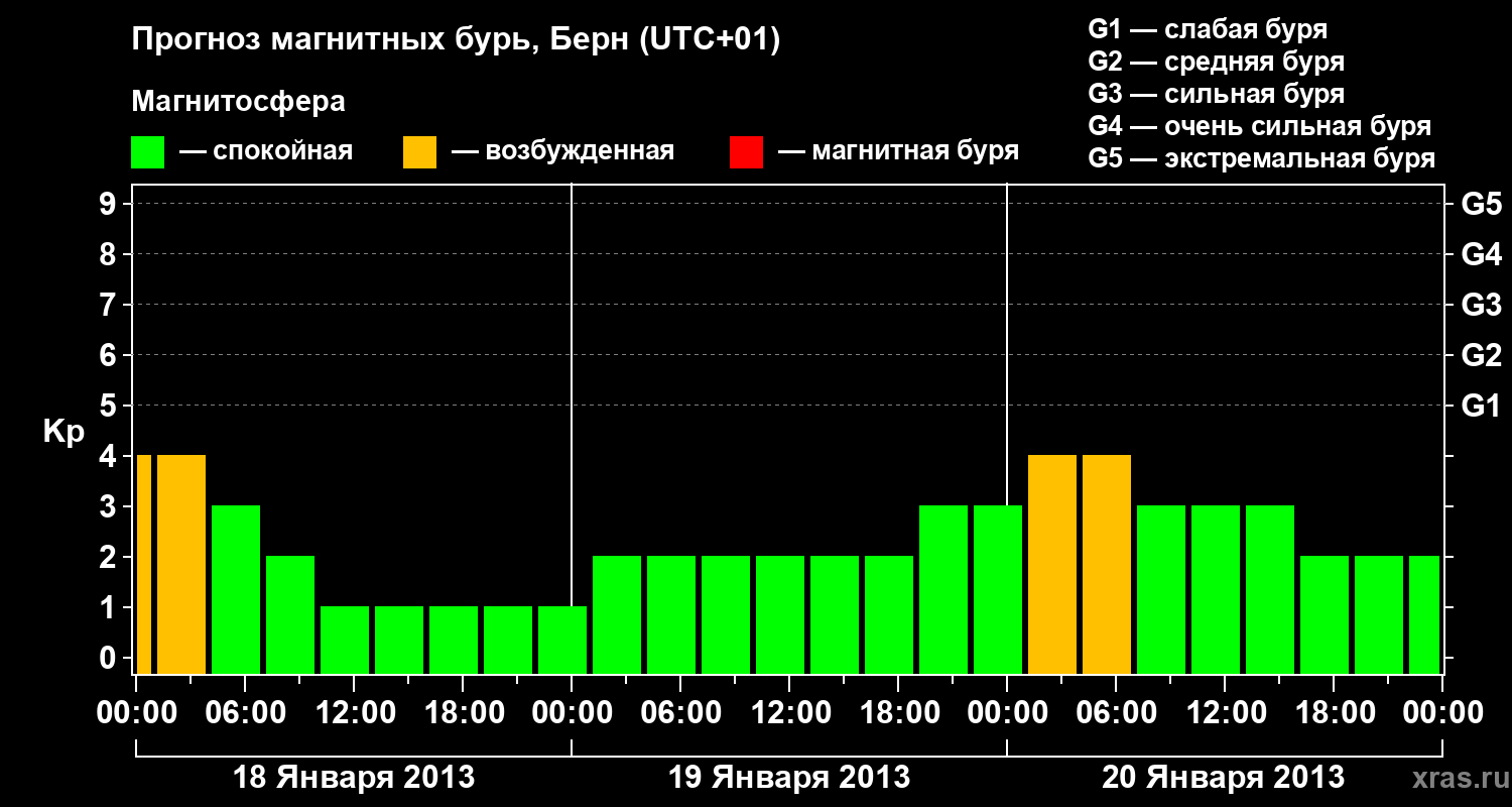 Прогноз магнитных бурь в Берне — 18 января 2013 года