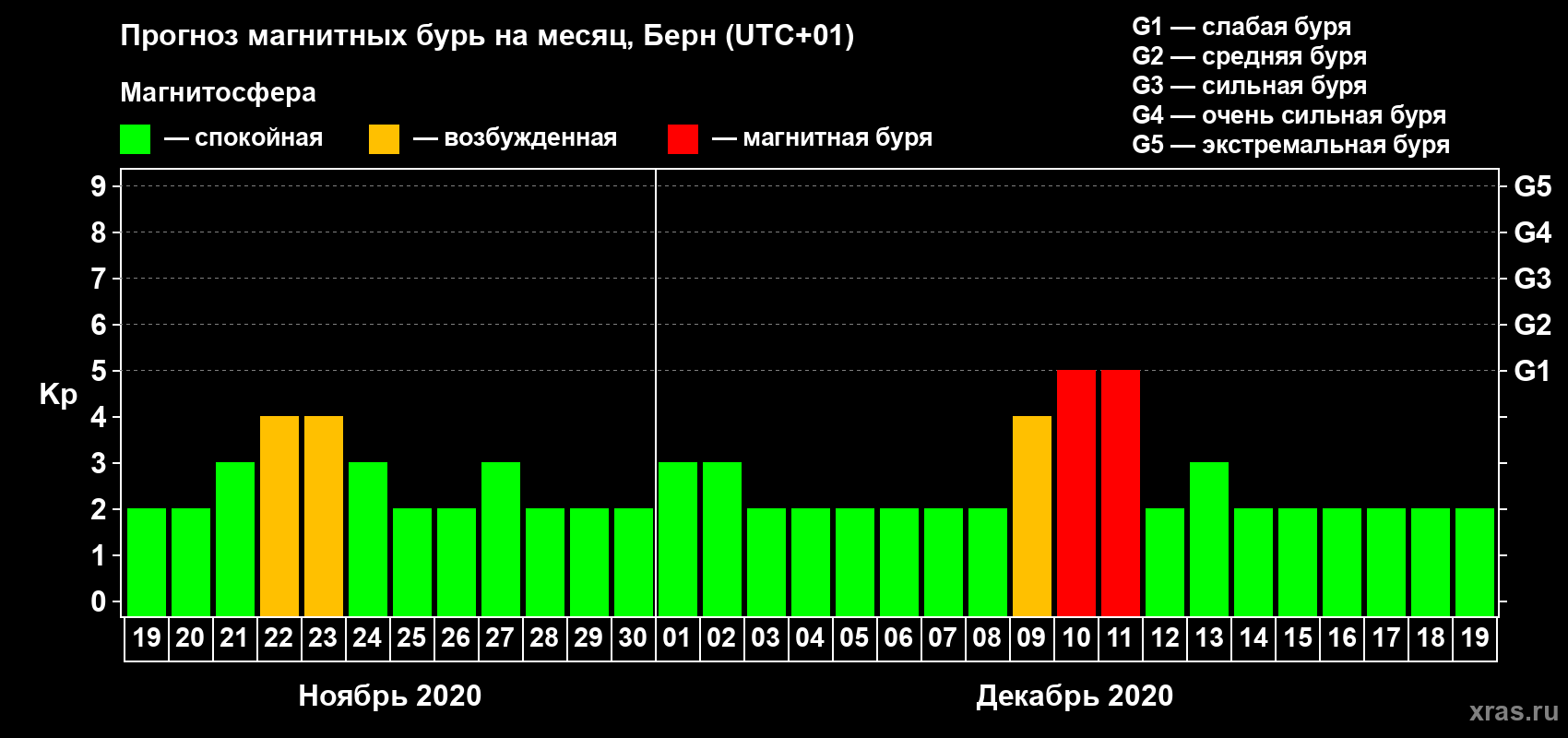 Прогноз магнитных бурь в Берне — 19 ноября 2020 года