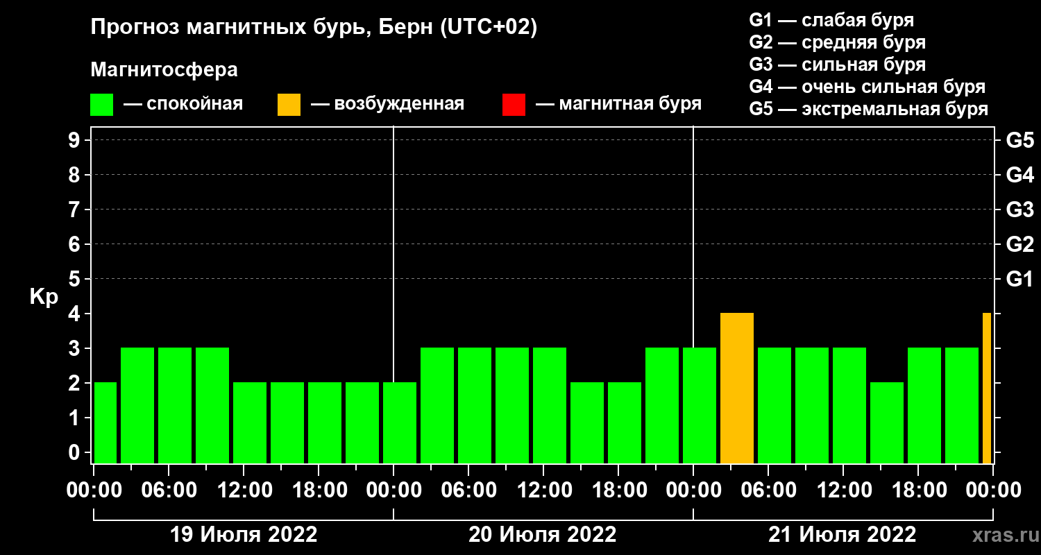 Прогноз магнитных бурь в Берне — 19 июля 2022 года