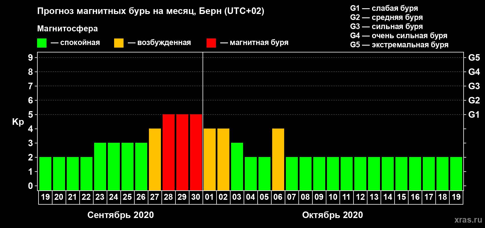 Прогноз магнитных бурь в Берне — 19 сентября 2020 года