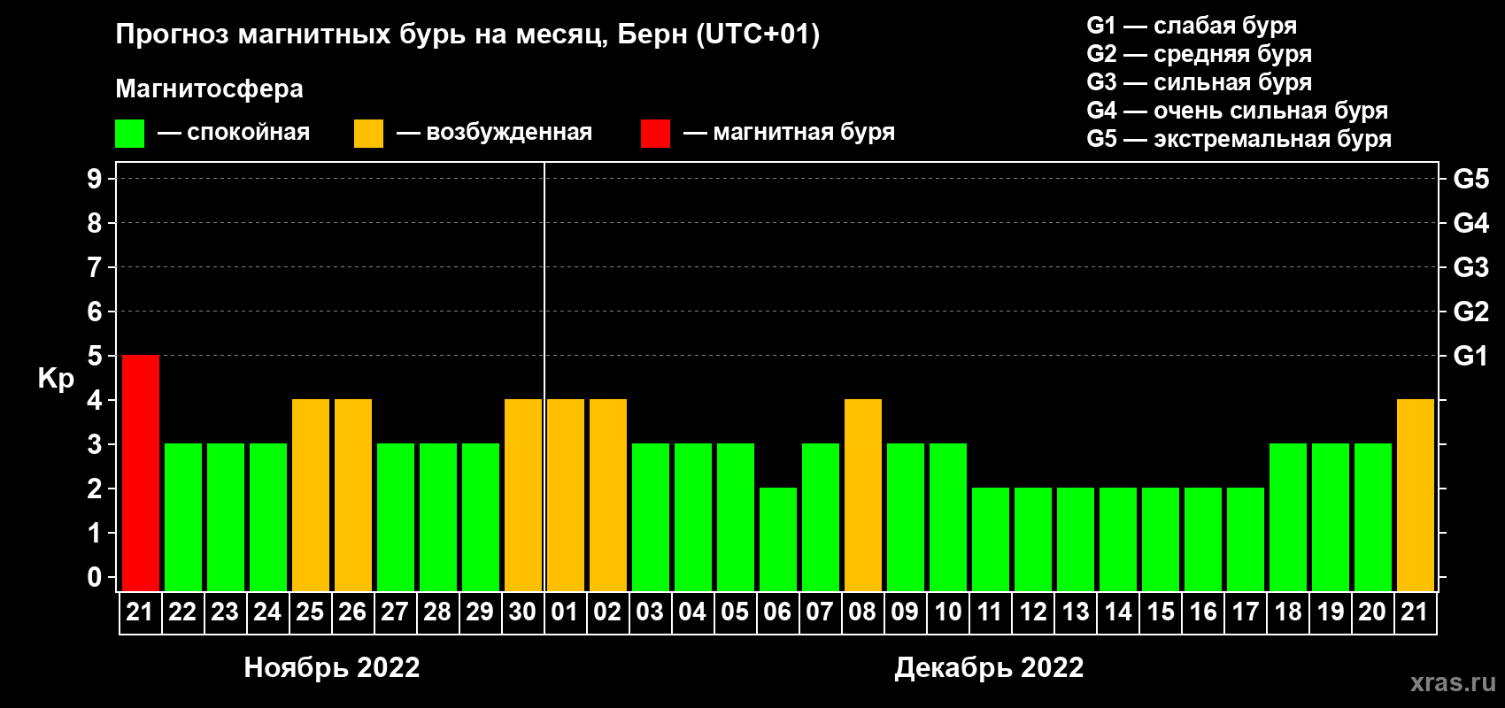 Прогноз магнитных бурь в Берне на 21 ноября 2022 года