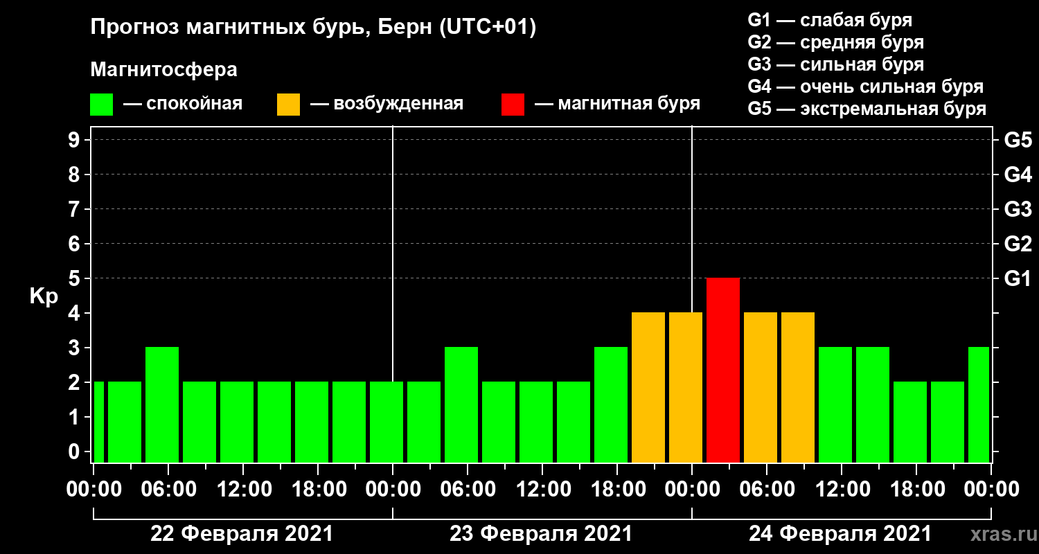 Прогноз магнитных бурь в Берне — 22 февраля 2021 года