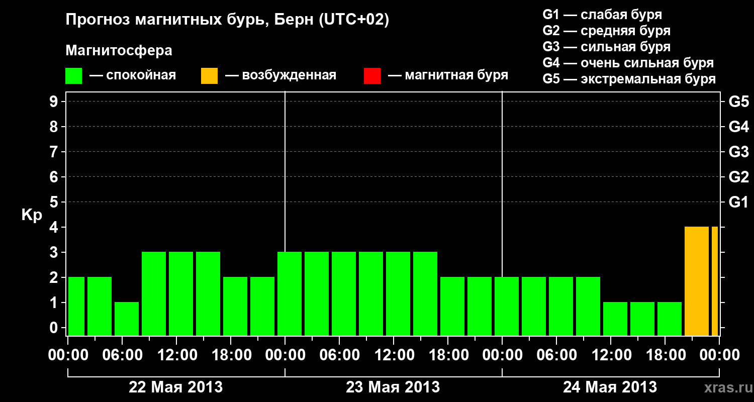 Прогноз магнитных бурь в Берне — 22 мая 2013 года