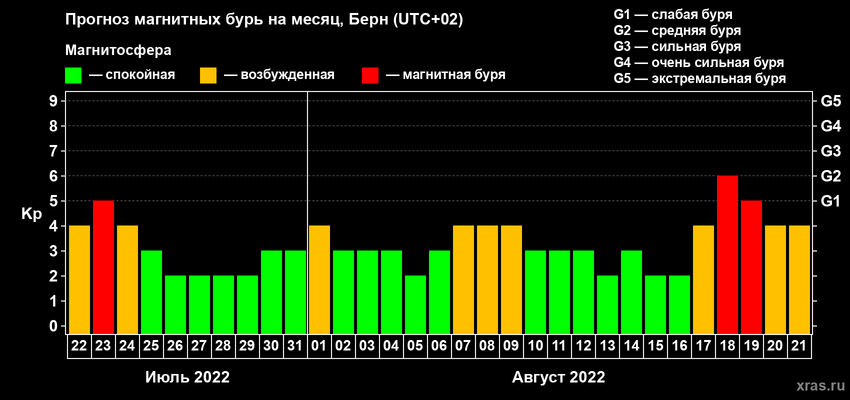 Прогноз магнитных бурь в Берне — 22 июля 2022 года