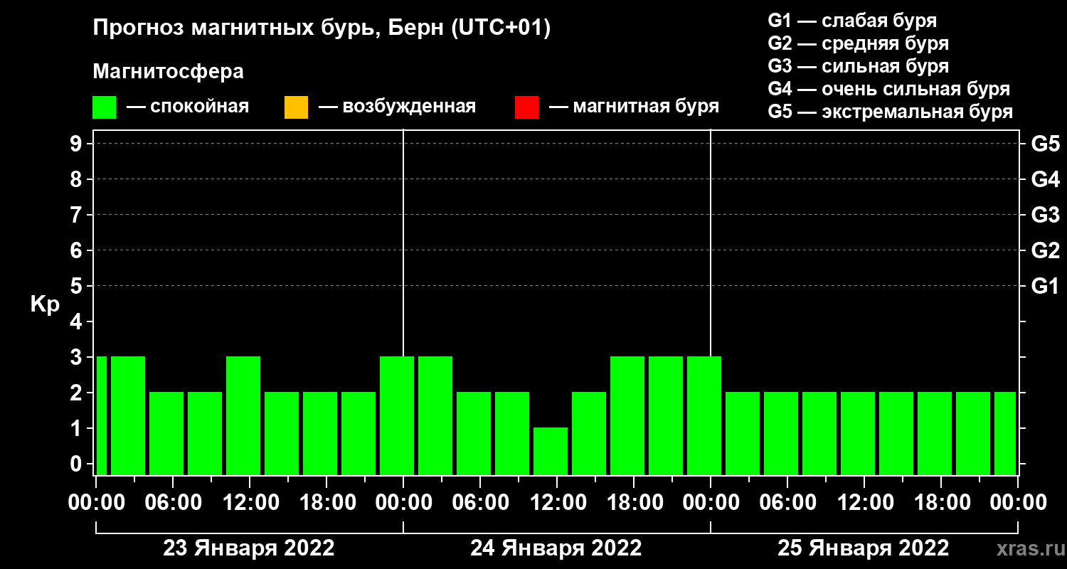Прогноз магнитных бурь в Берне на 23 января 2022 года