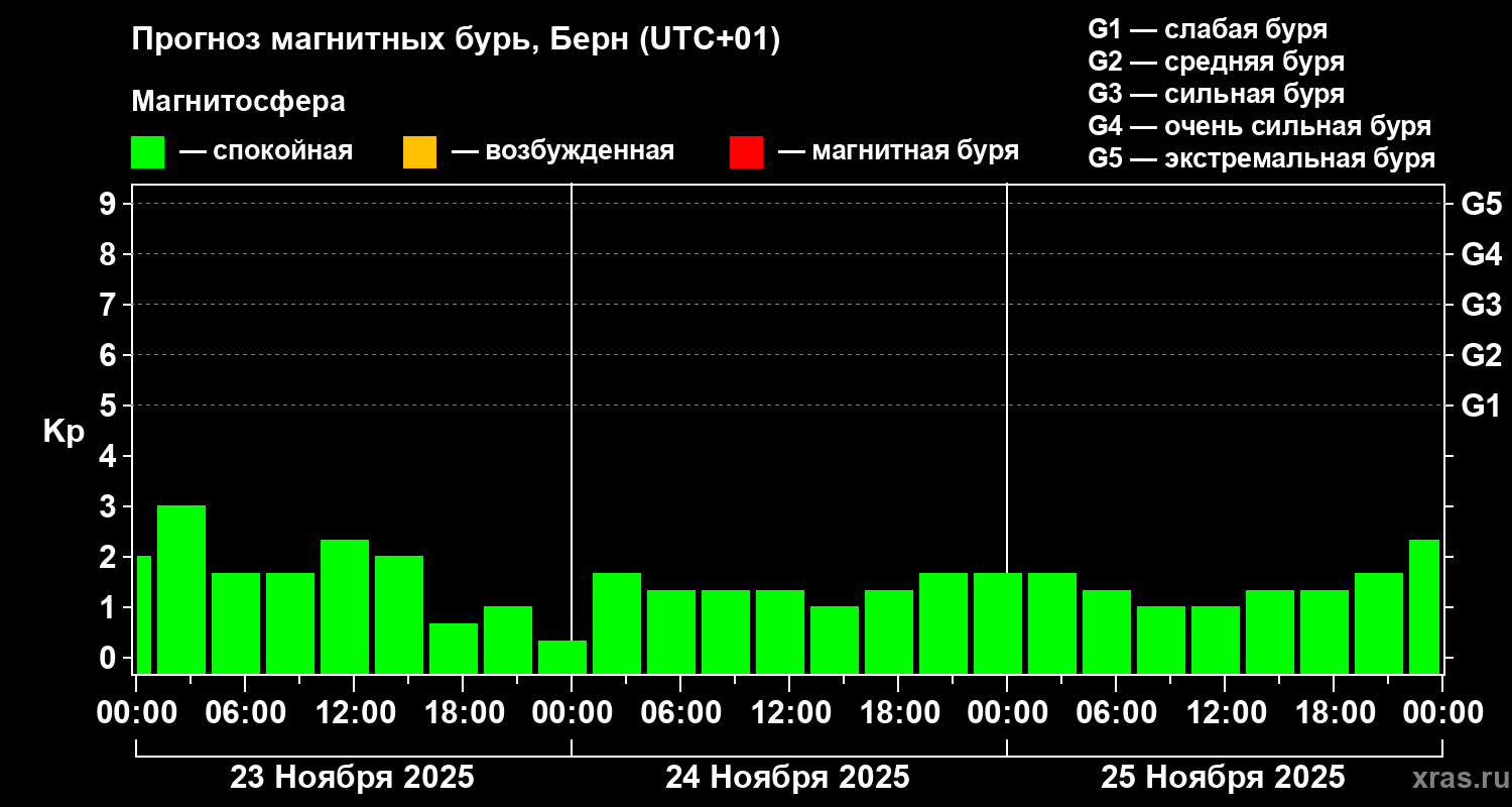 Прогноз магнитных бурь в Берне — 23 ноября 2025 года