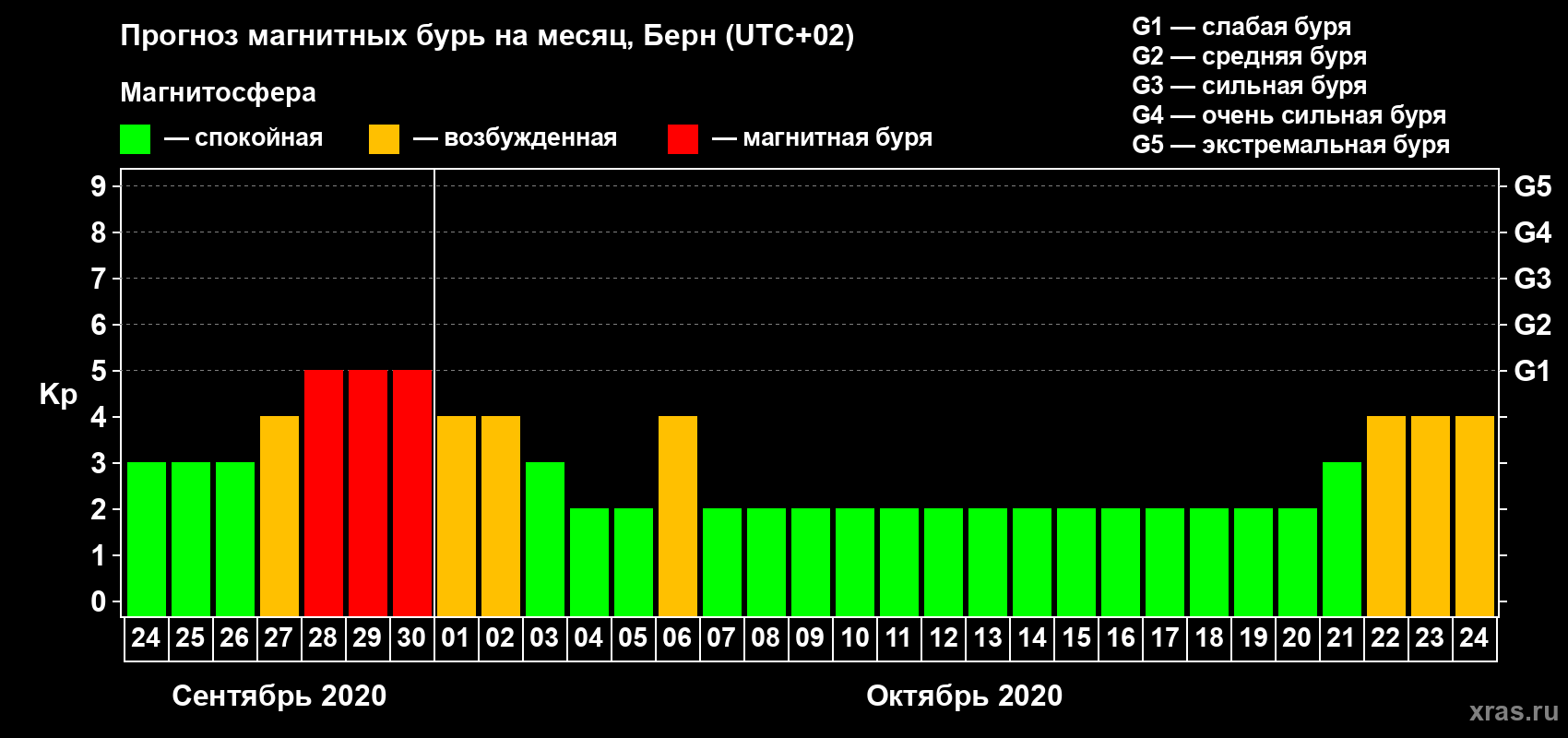 Прогноз магнитных бурь в Берне — 24 сентября 2020 года