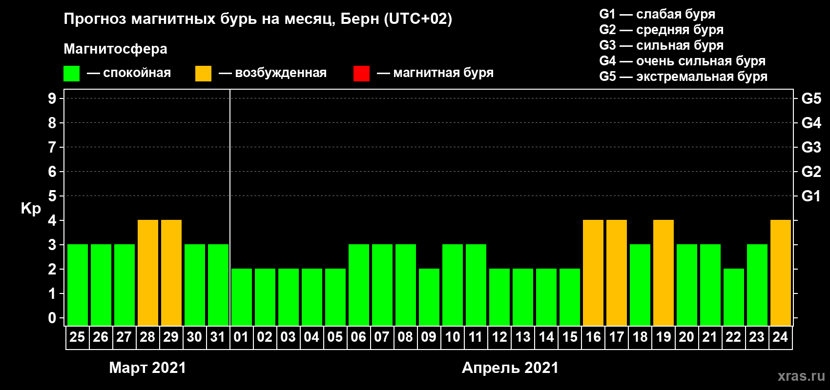 Прогноз магнитных бурь в Берне на 25 марта 2021 года