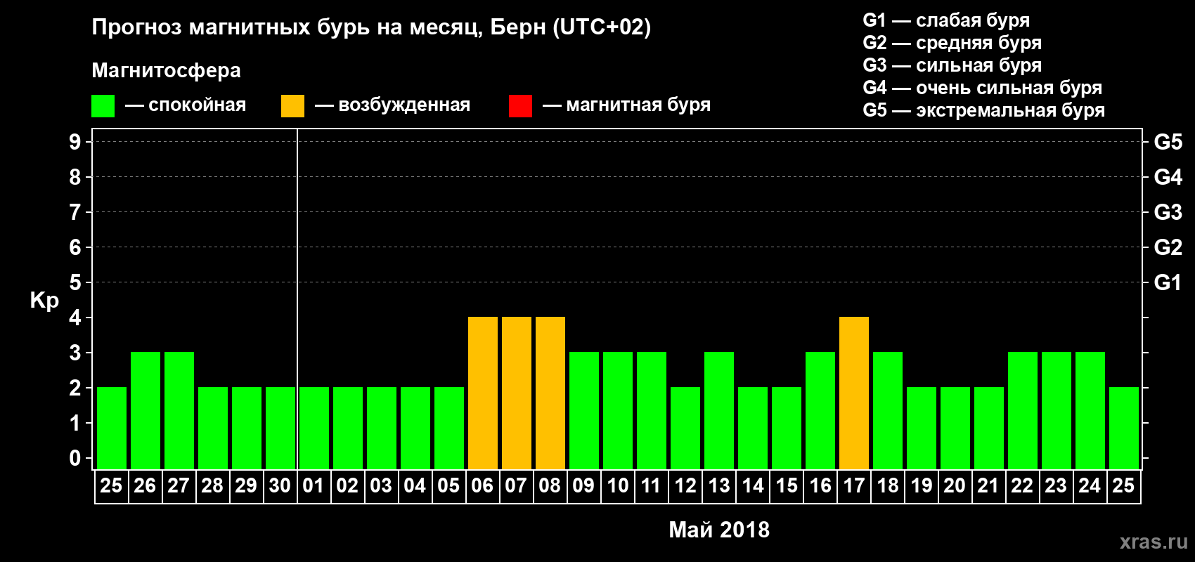 Прогноз магнитных бурь в Берне — 25 апреля 2018 года