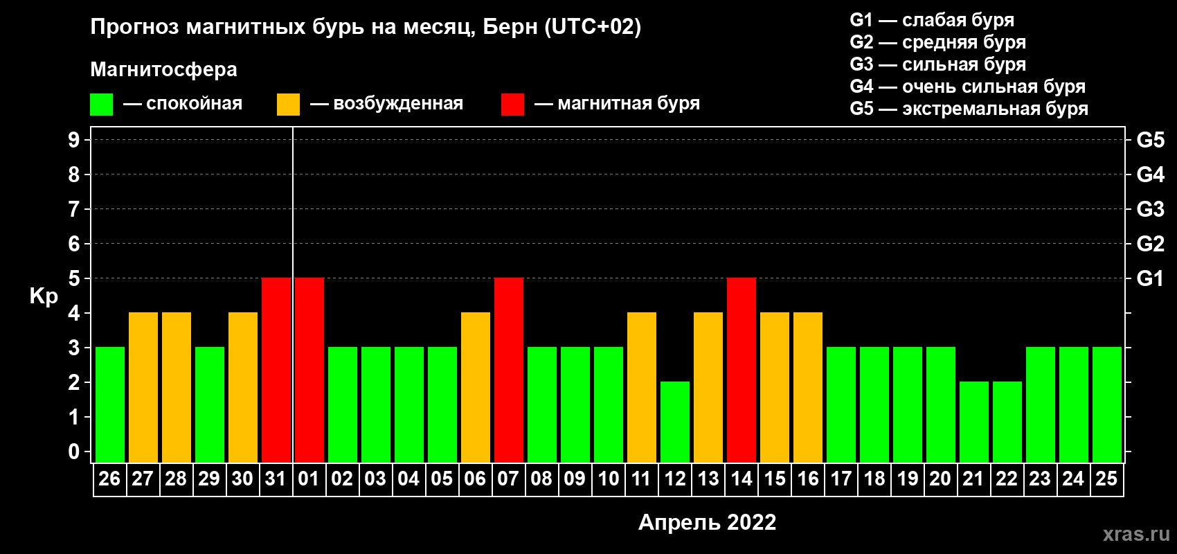 Прогноз магнитных бурь в Берне — 26 марта 2022 года