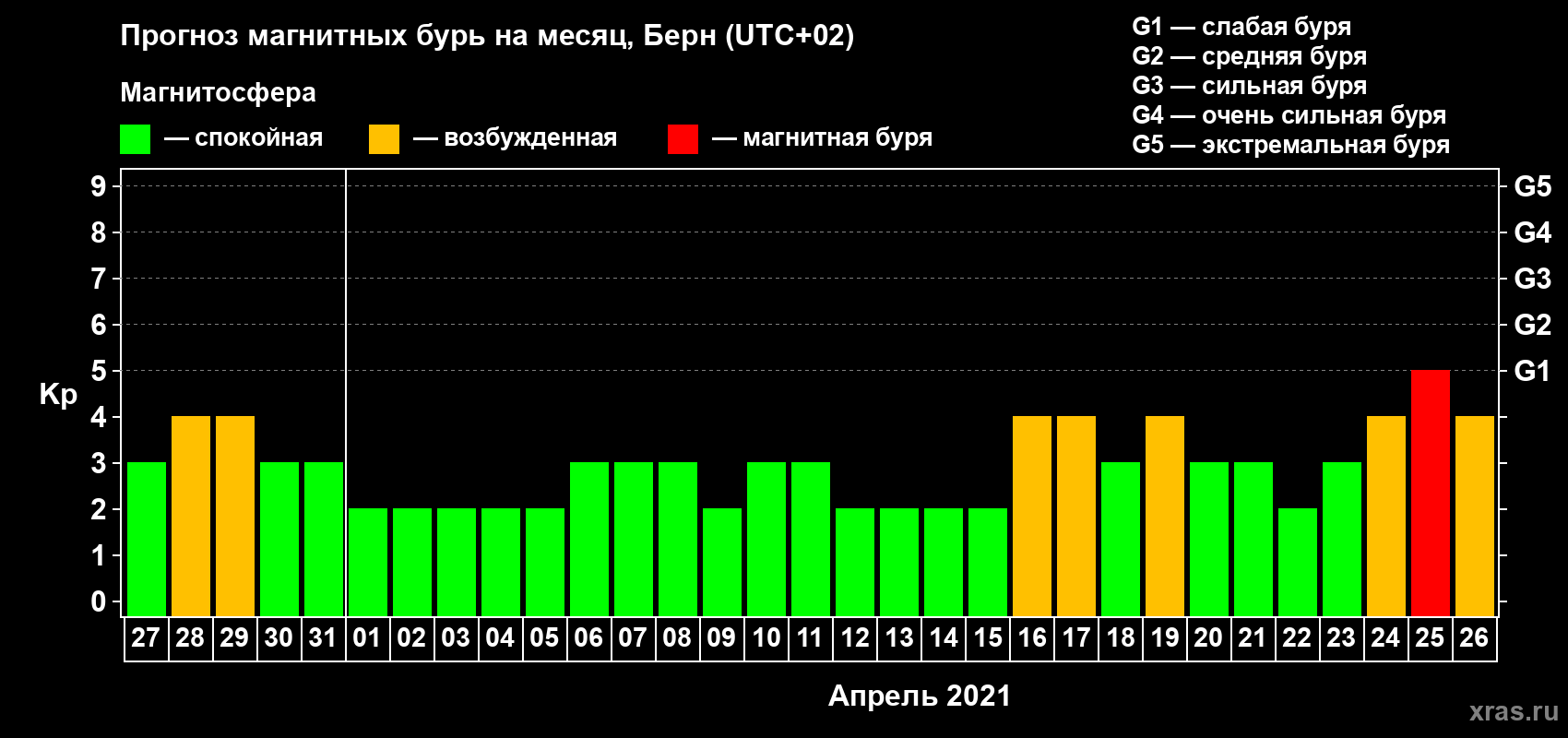 Прогноз магнитных бурь в Берне — 27 марта 2021 года