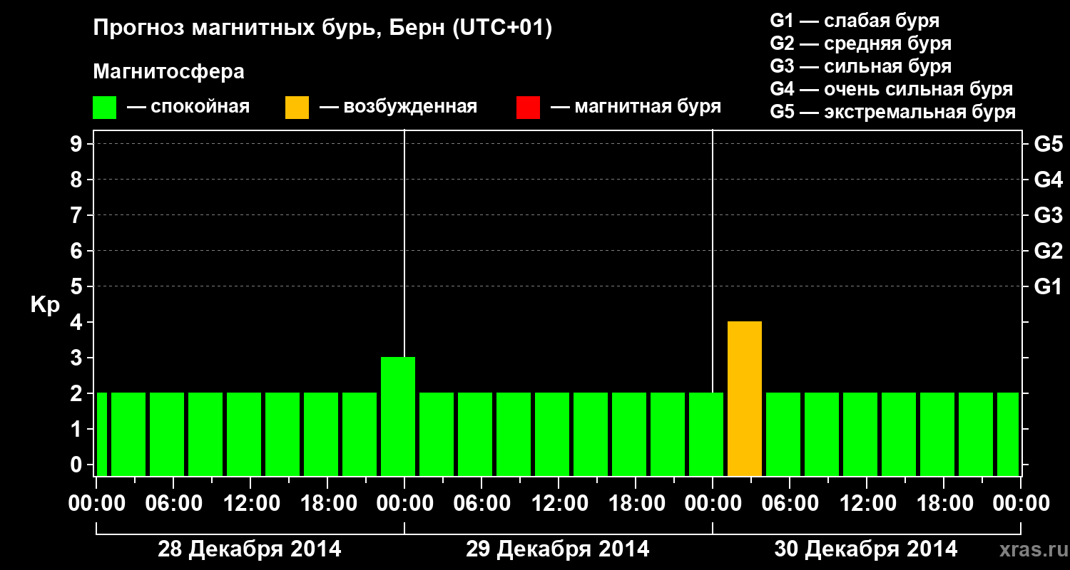 Прогноз магнитных бурь в Берне — 28 декабря 2014 года