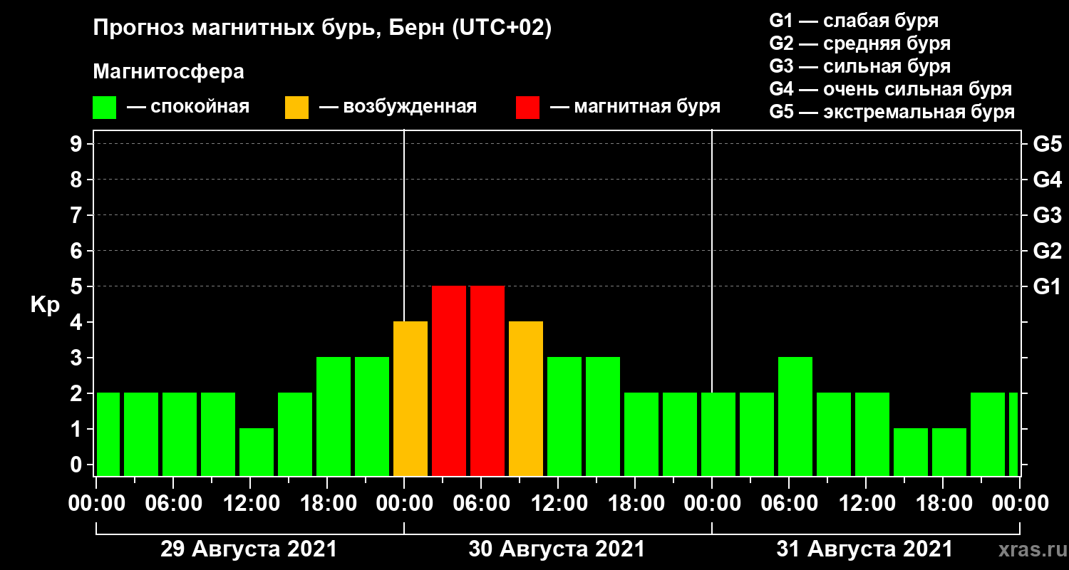 Прогноз магнитных бурь в Берне — 29 августа 2021 года