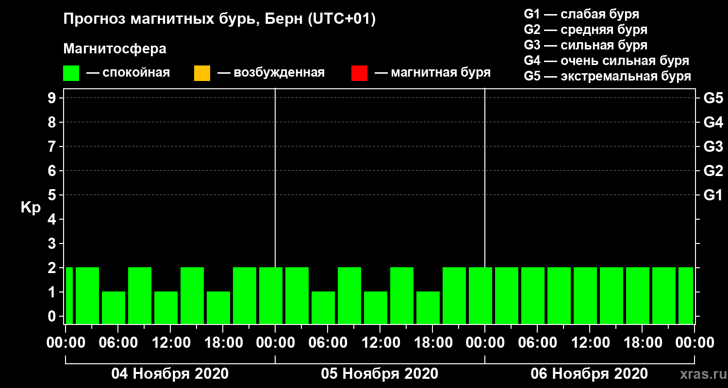Прогноз магнитных бурь в Берне — 4 ноября 2020 года