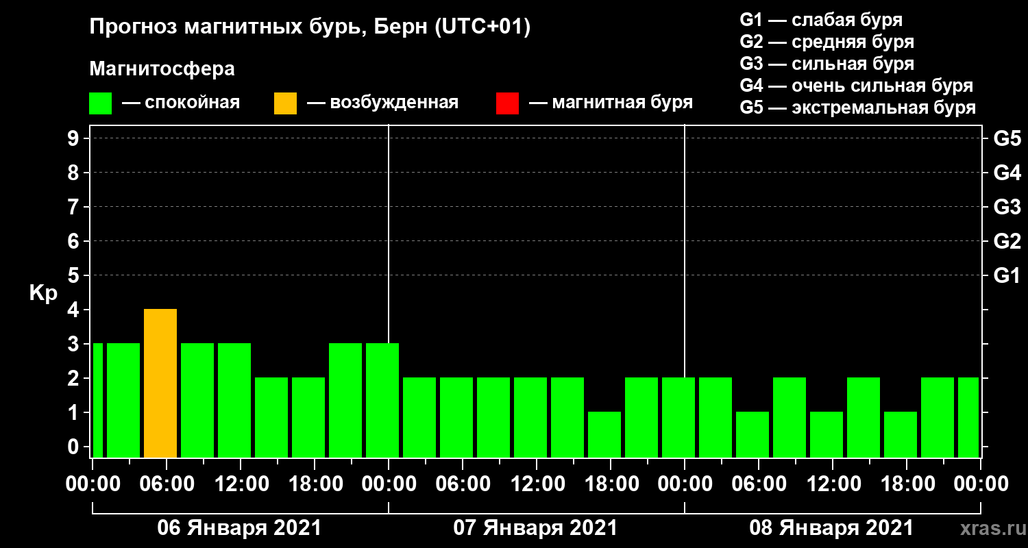 Прогноз магнитных бурь в Берне — 6 января 2021 года