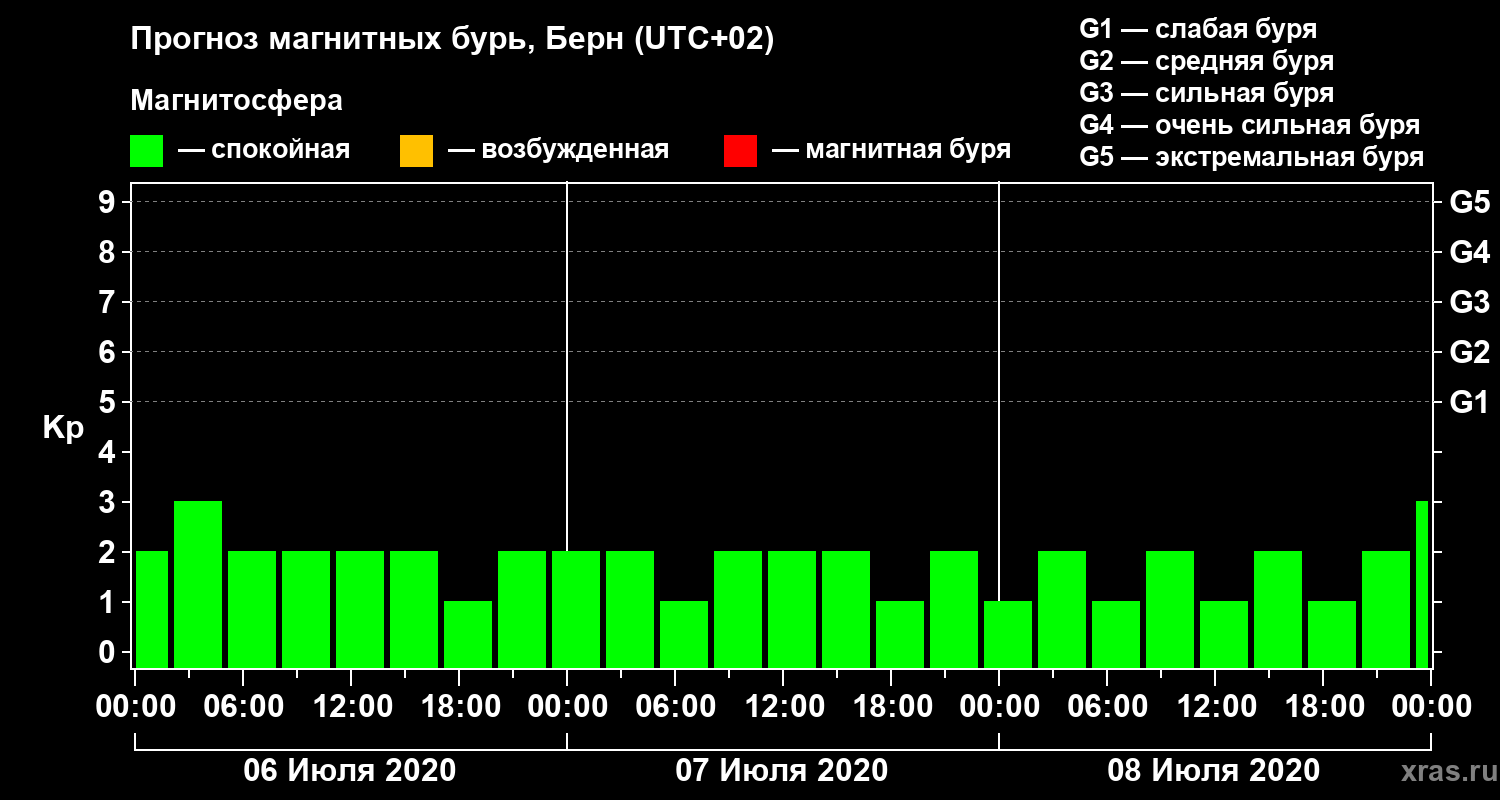 Прогноз магнитных бурь в Берне — 6 июля 2020 года