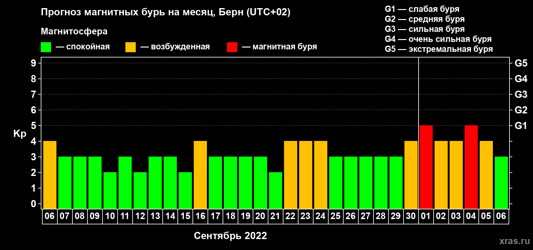 Прогноз магнитных бурь в Берне — 6 сентября 2022 года
