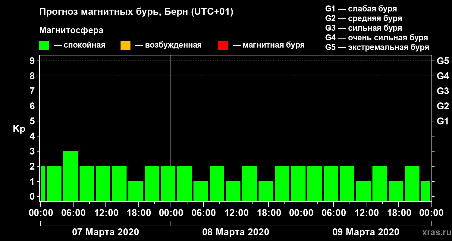 Прогноз магнитных бурь в Берне — 7 марта 2020 года