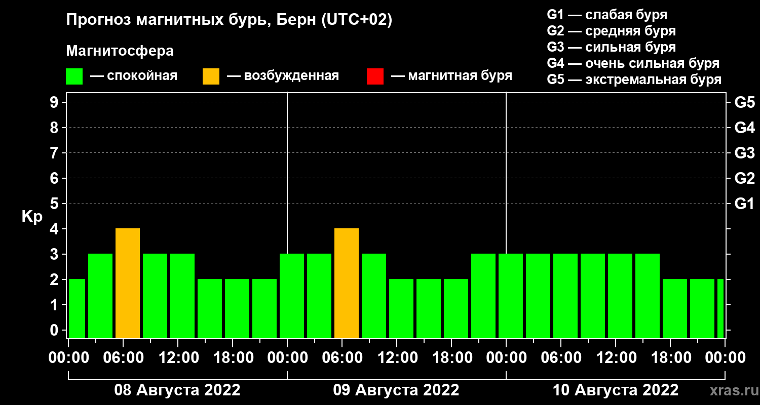 Прогноз магнитных бурь в Берне — 8 августа 2022 года