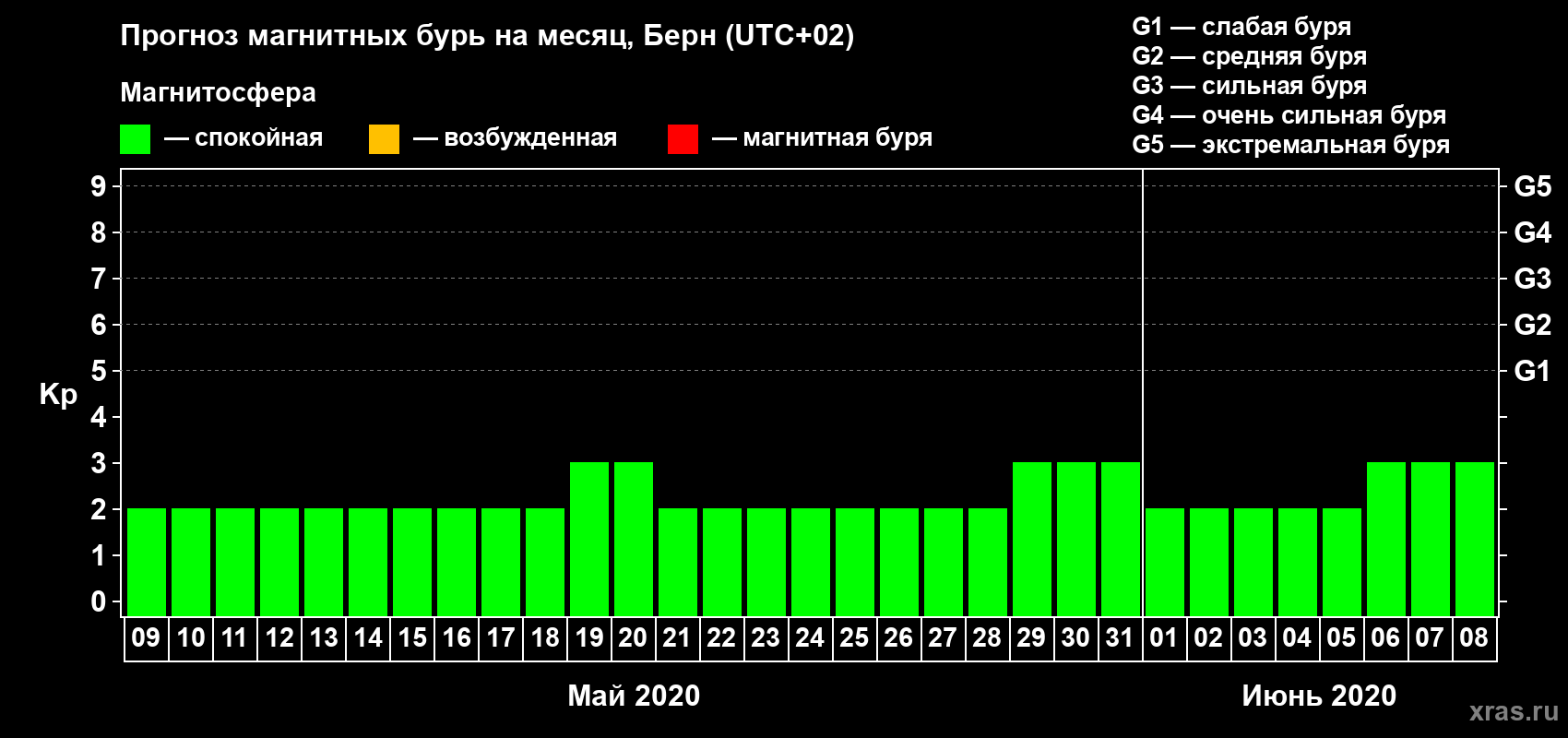 Прогноз магнитных бурь в Берне — 9 мая 2020 года
