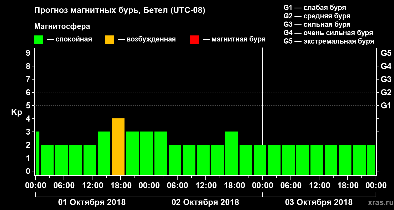 Прогноз магнитных бурь в Бетеле на 1 октября 2018 года