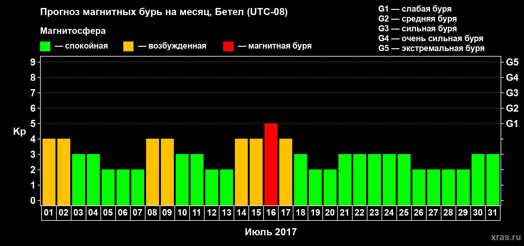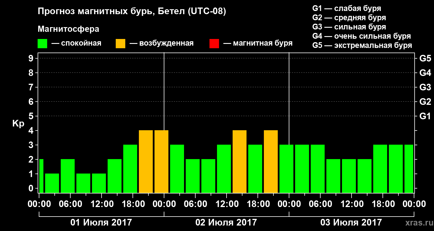 Прогноз магнитных бурь в Бетеле — 1 июля 2017 года