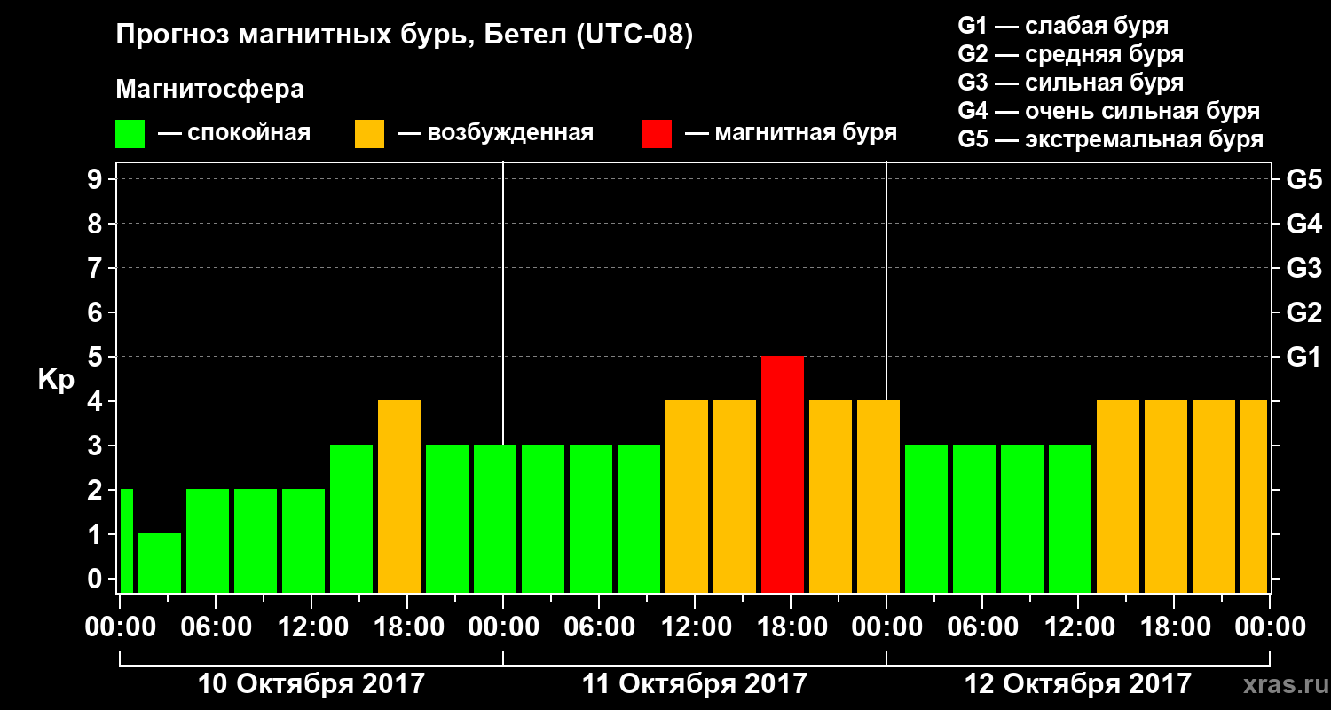 Прогноз магнитных бурь в Бетеле — 10 октября 2017 года