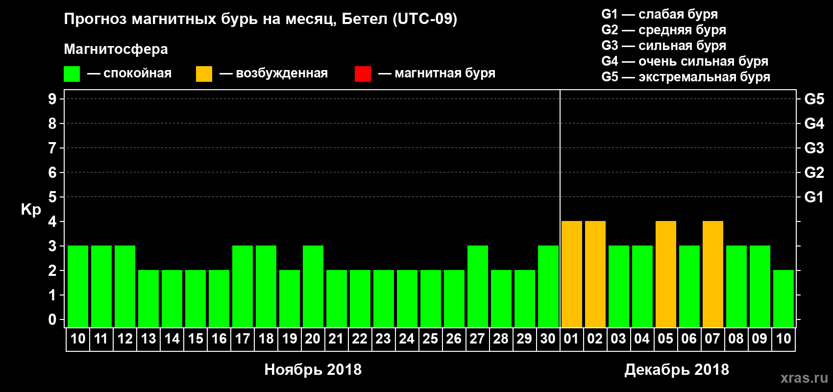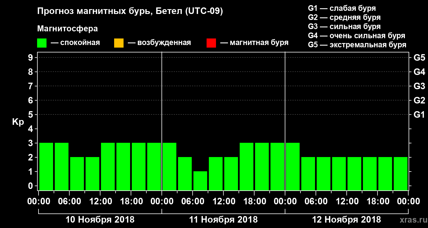 Прогноз магнитных бурь в Бетеле — 10 ноября 2018 года