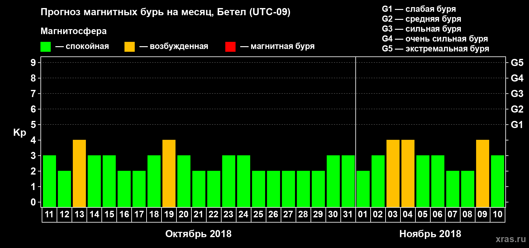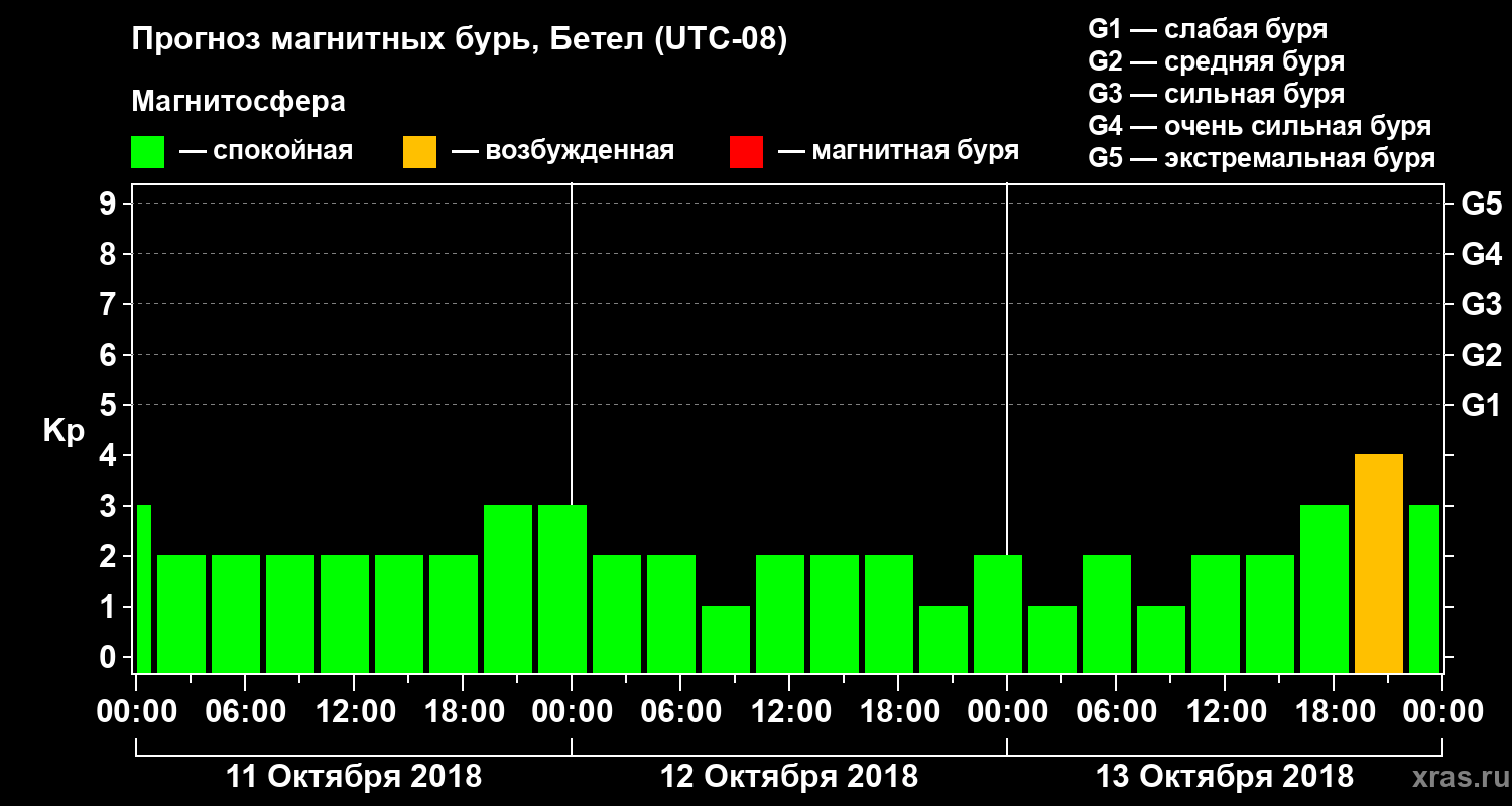 Прогноз магнитных бурь в Бетеле — 11 октября 2018 года