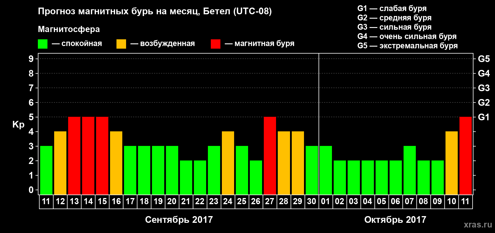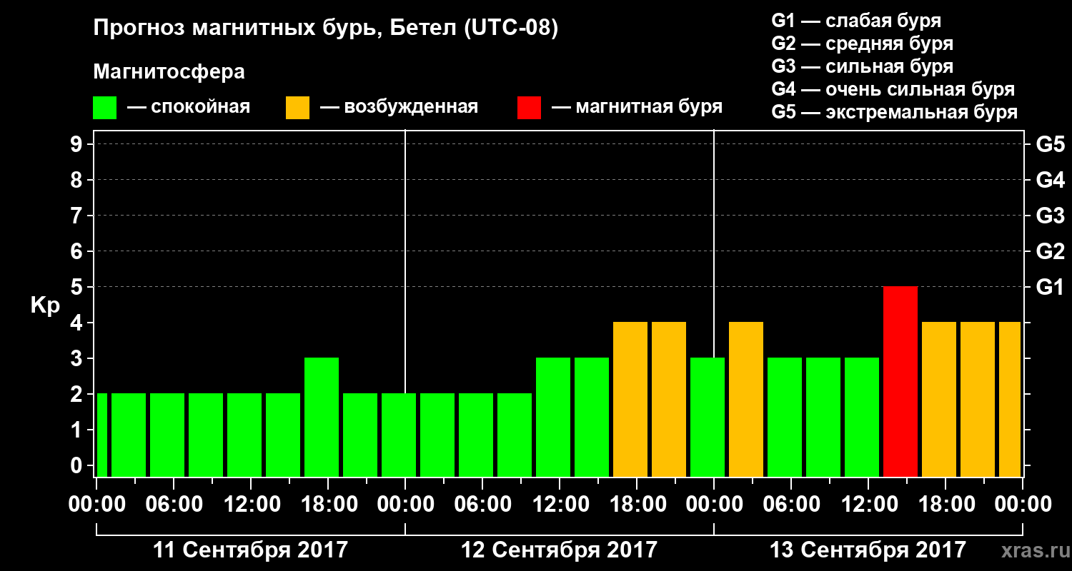 Прогноз магнитных бурь в Бетеле — 11 сентября 2017 года