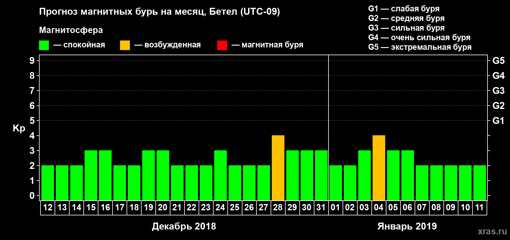 Прогноз магнитных бурь в Бетеле — 12 декабря 2018 года