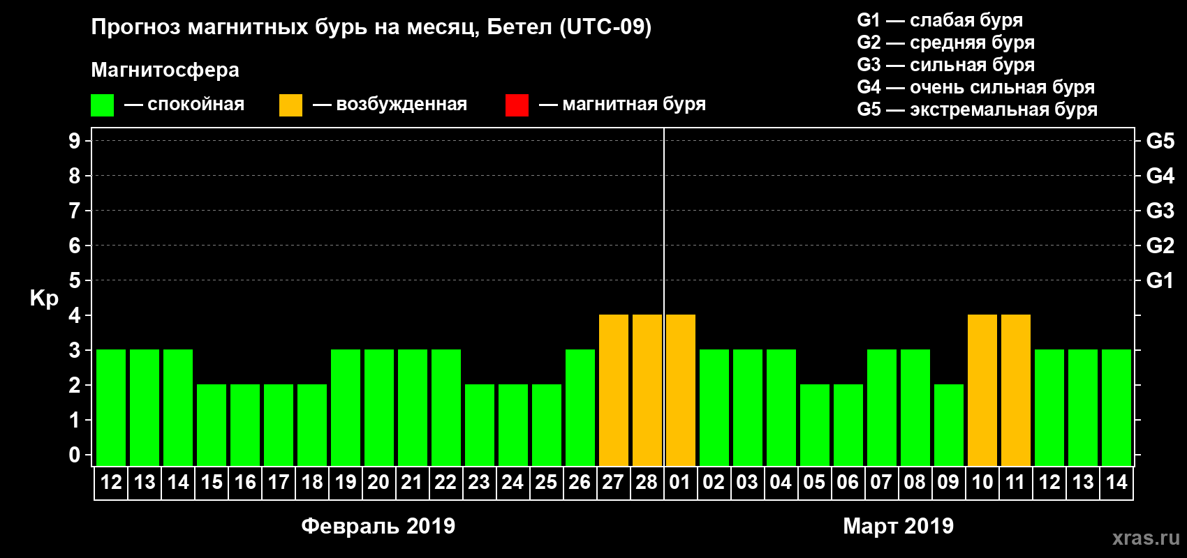 Прогноз магнитных бурь в Бетеле — 12 февраля 2019 года