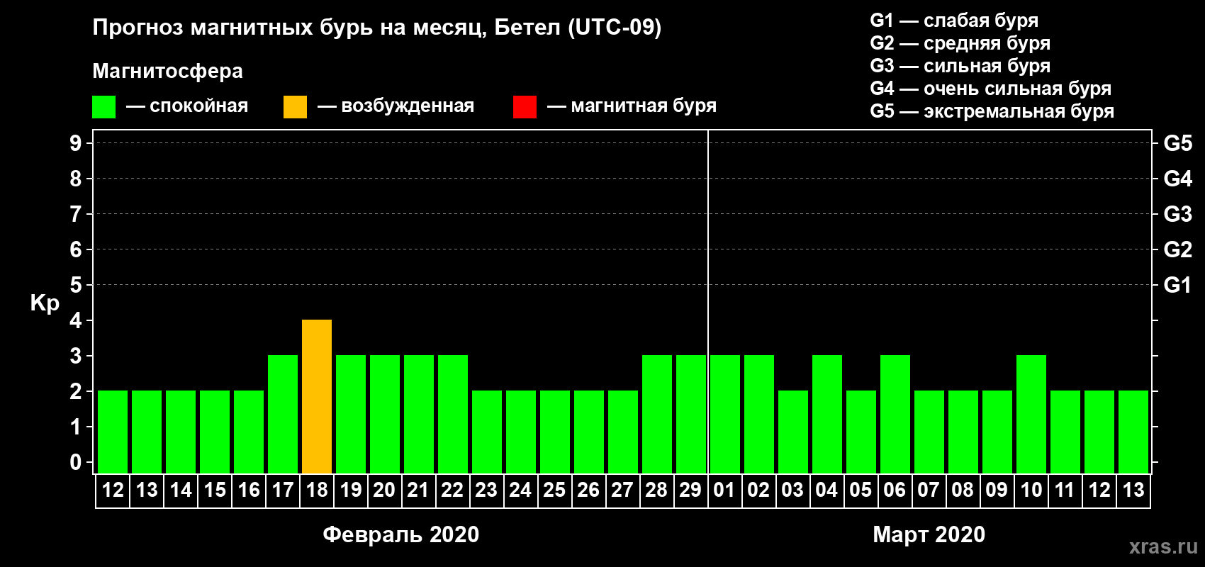 Прогноз магнитных бурь в Бетеле — 12 февраля 2020 года