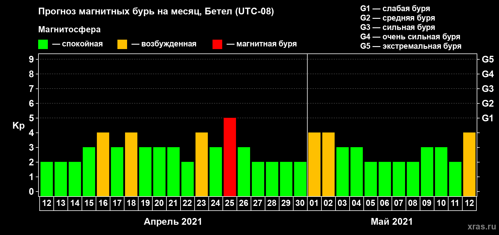 Прогноз магнитных бурь в Бетеле — 12 апреля 2021 года