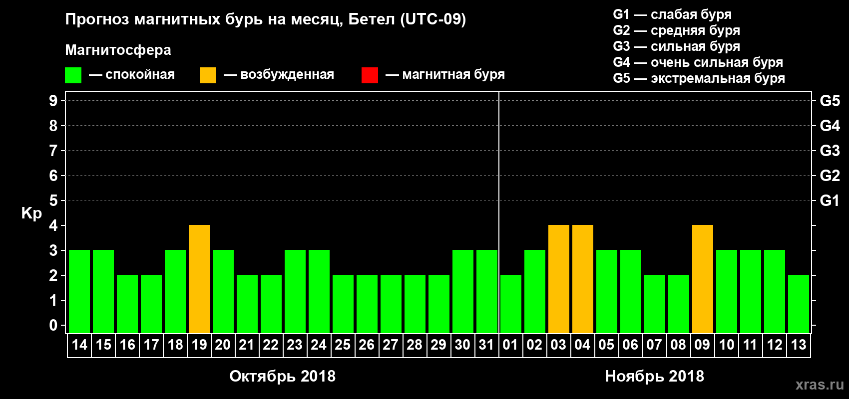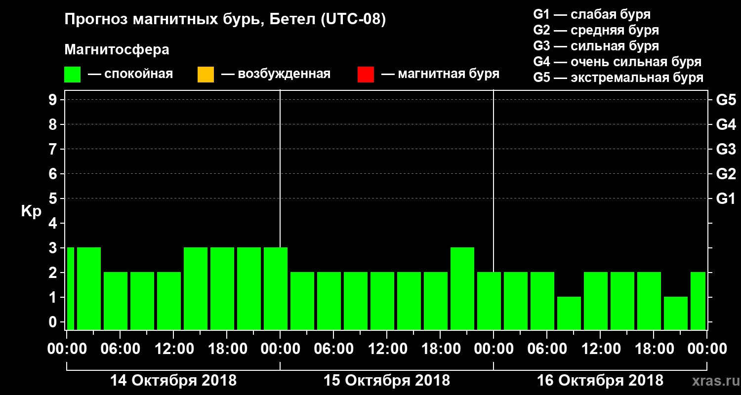 Прогноз магнитных бурь в Бетеле — 14 октября 2018 года