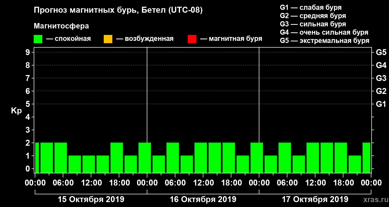 Прогноз магнитных бурь в Бетеле — 15 октября 2019 года