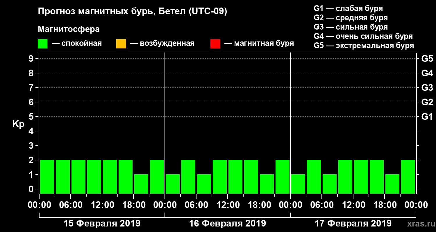 Прогноз магнитных бурь в Бетеле — 15 февраля 2019 года